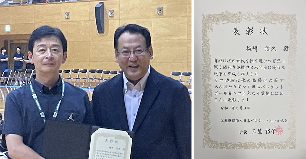 佐世保市立日宇中学校の梅崎信久先生が2024年度選手育成指導者表彰を受賞されました。