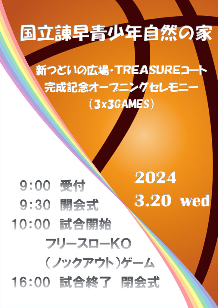 国立諫早青少年自然の家 新つどいの広場・TREASUREコート 完成記念オープニングセレモニー(3x3GAMES)要項
