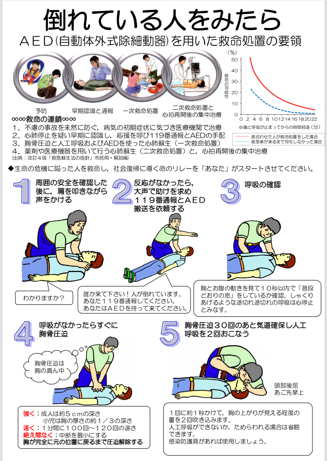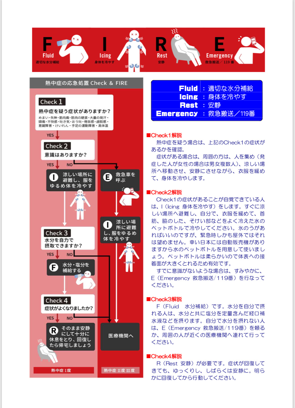熱中症対策フローとAED使用法について掲載します。