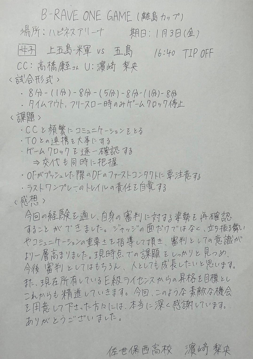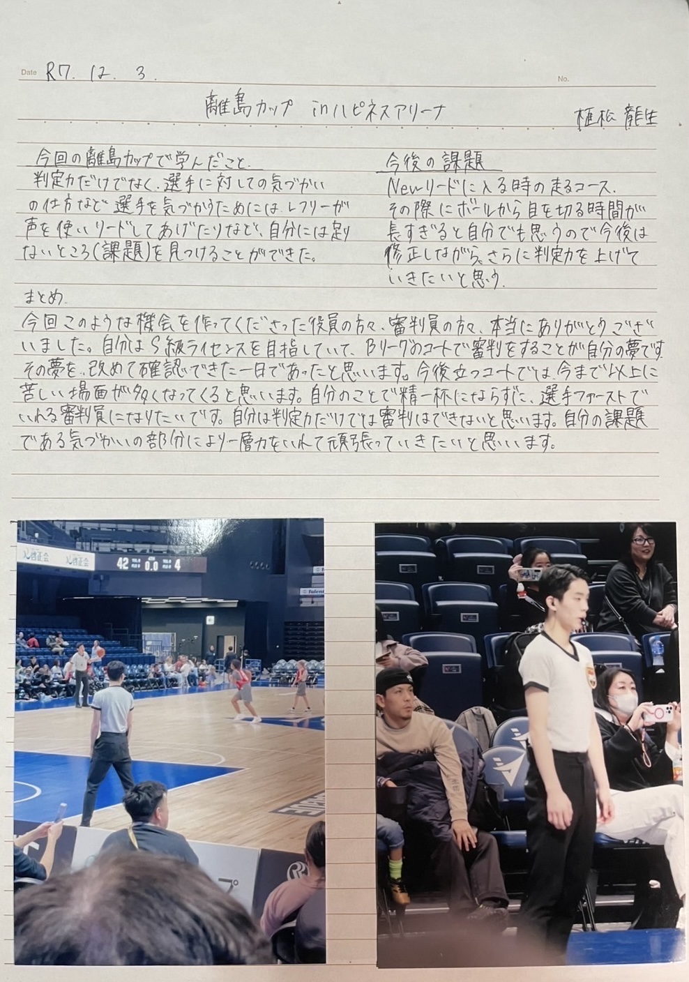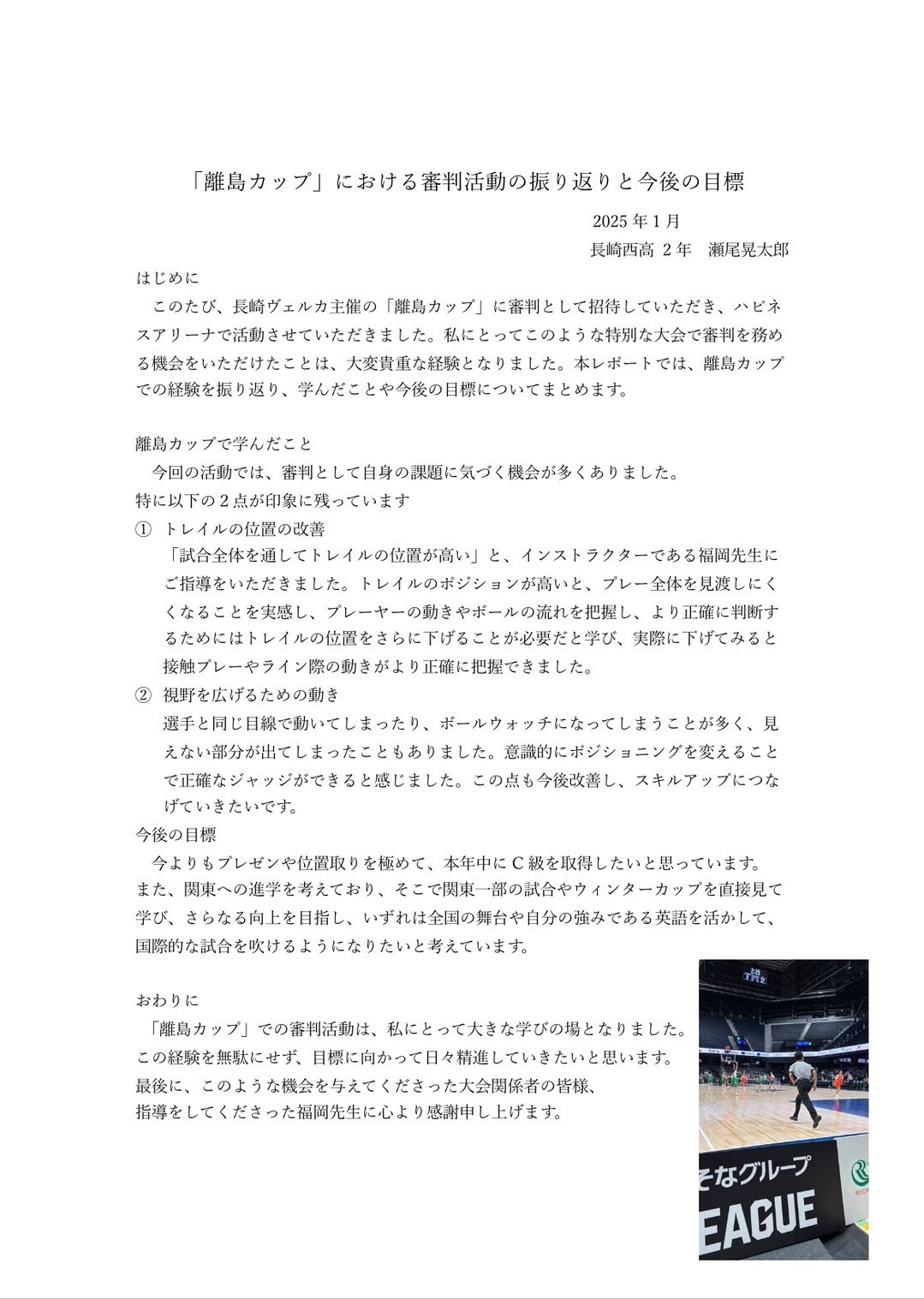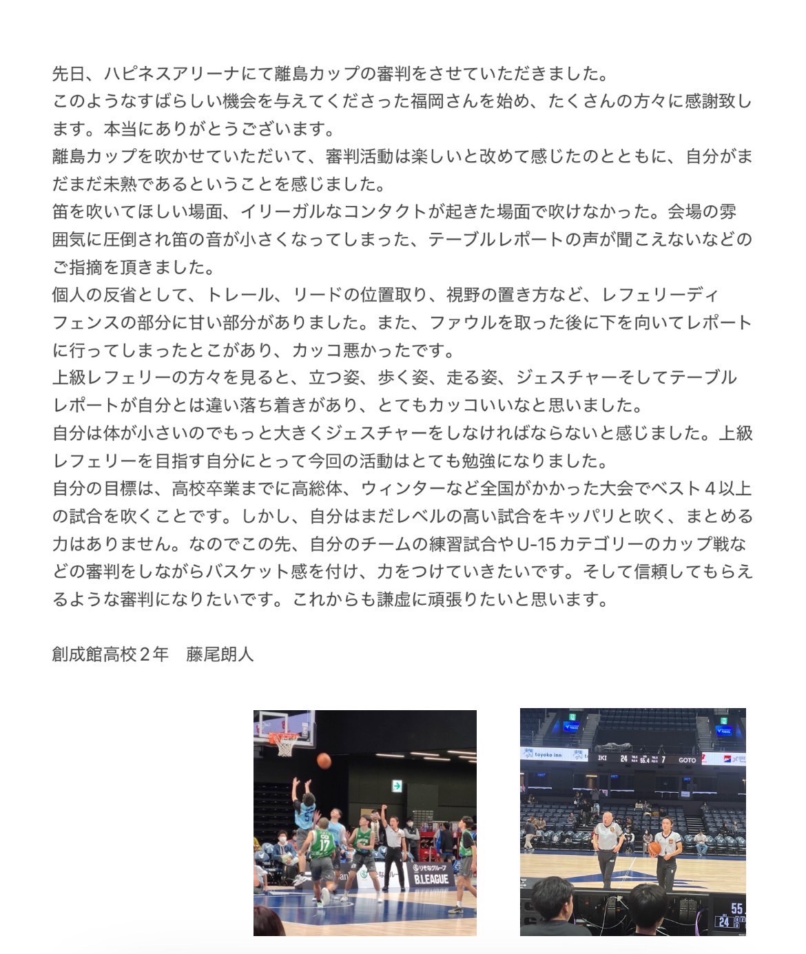 年始に開催された離島カップに、高校生レフリーが参加しました。参加者のレポートを掲載します。