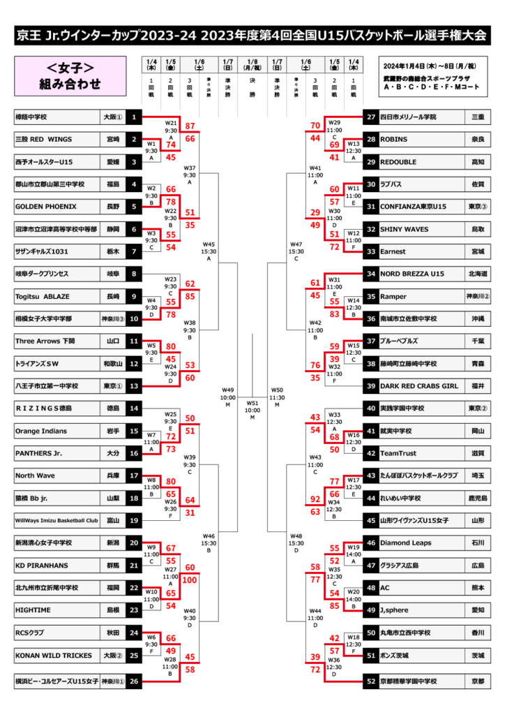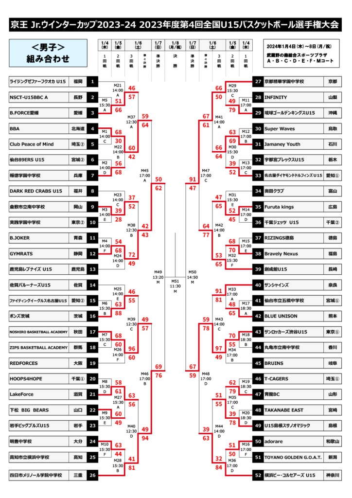 男子準々決勝京都精華学園中学校(京都)91-47創成館U15(長崎)敗退