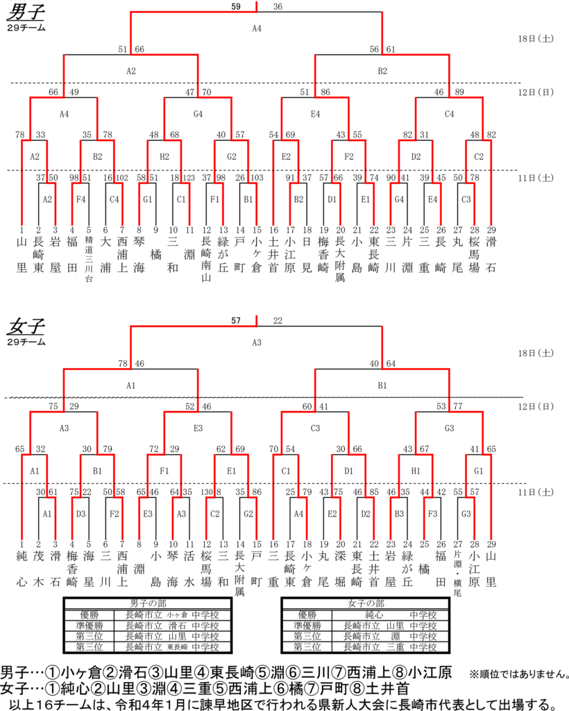 令和3年度 長崎市中学校総合体育大会新人大会 結果