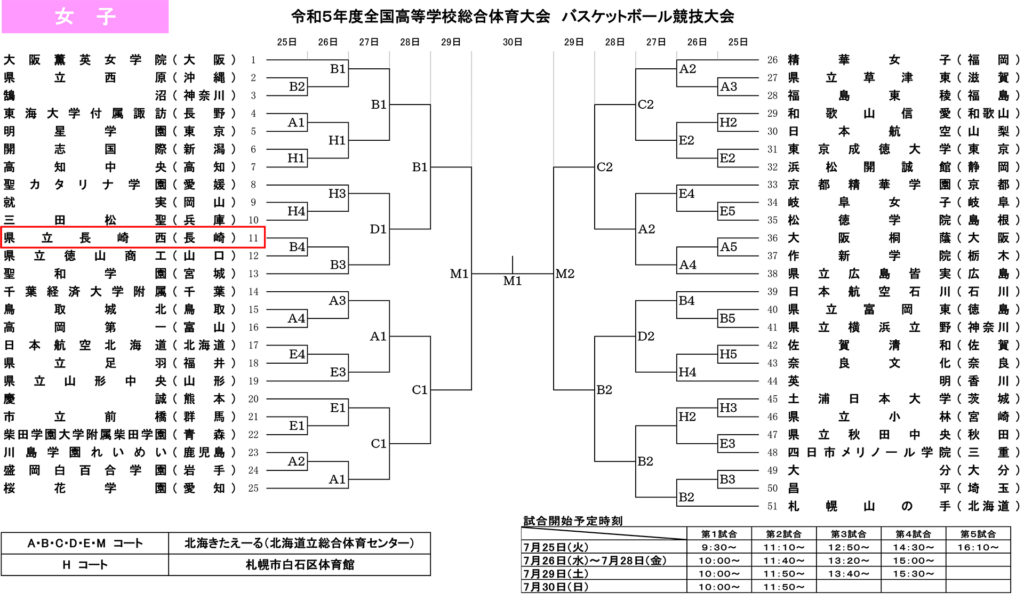 女子、長崎西は1回戦、山口代表、徳山商工と対戦。