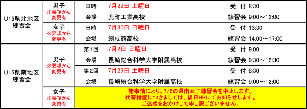 2023年度 育成センター(DC)U15地区選抜 7月練習会のお知らせ